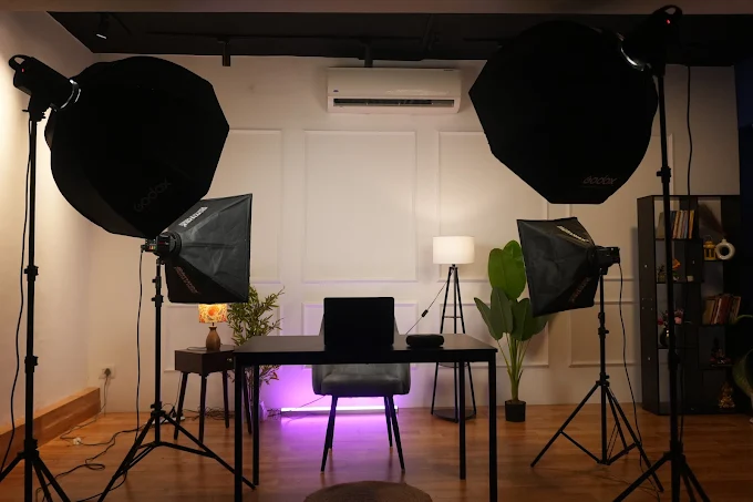 - Professional lighting setup for video and photography